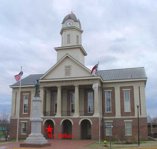 I’ve uploaded some pictures of the new Chatham County Courthouse (the original was destroyed by fire in 2010). I miss my old office but I’m excited for the new beginning.